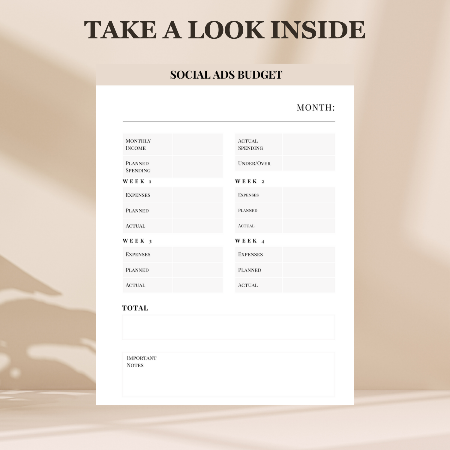 Social Ads Budget: Plan and allocate your budget for social media advertising campaigns.