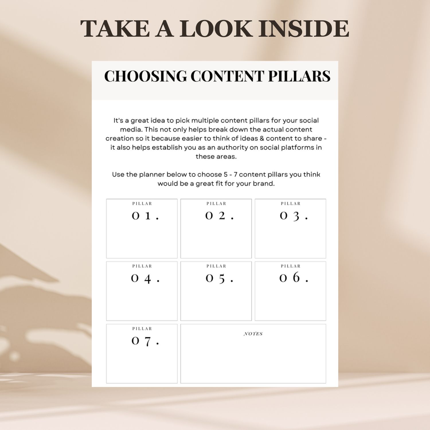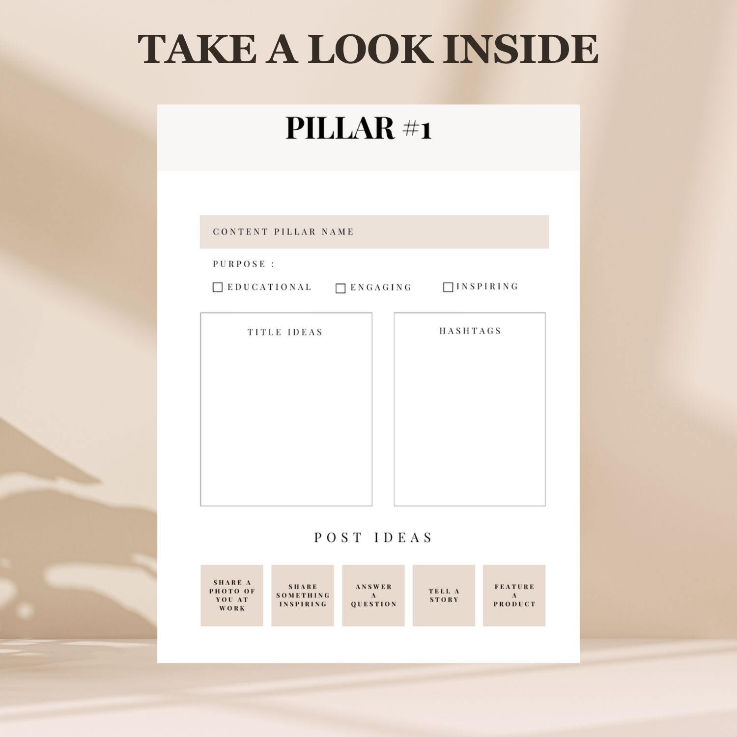 ▶︎Content Pillars: Uncover the secrets to creating engaging and consistent content with our content pillars section. Develop a cohesive brand identity that resonates with your audience.